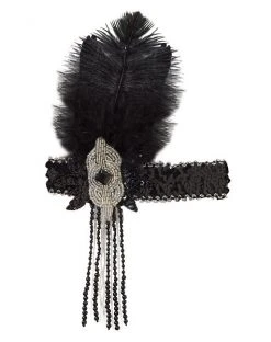 Bring back the good old days with this Black Flapper Adult Women’s Costume. This beautiful black 1920’s style dress features fringe trim and comes complete with a feathered headpiece along with a pair of fancy gloves. Add a bob wig (sold separately) and you’ll be the star of the speakeasy!