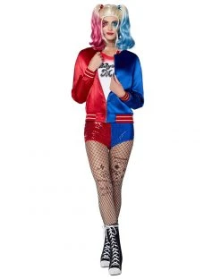 Look as stylish as your favorite movie character in this official Suicide Squad Harley Quinn Jacket! This red and blue zip-up jacket features gold writing on the back that says Property of Joker established since 4ever and Puddin Freaky. It’s the perfect jacket for your Halloween or cosplay look.