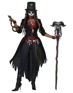 Cast some voodoo magic on your on-lookers this Halloween! This printed vest and jacket will create a classic voodoo look that will have you standing out in any crowd. Add the included hat, hat ties, belt, waist ties and necklace for the ultimate look.