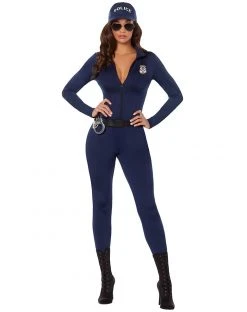 Lay down the law on Halloween night with this police officer catsuit costume! Coming complete with a hat, a belt, and a badge, you’ll be the most official officer in the room. Keep everyone in line while you sport this stylish look.