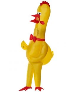 Are you going to wear the funniest costume on the market this year, or are you too chicken? This rubber chicken costume features a comical yellow jumpsuit that stays puffed up with the help of an internal fan. Big, beady eyes and a red bow tie add the perfect finishing touches to this hilarious getup.