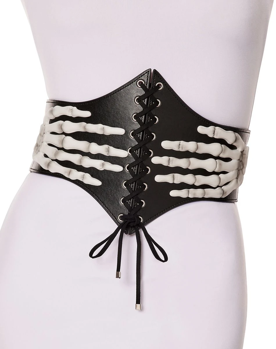 Add the perfect compliment to your scary skeleton costume when you wear this waist cinch! This sinister cinch will definitely level up your look this Halloween.