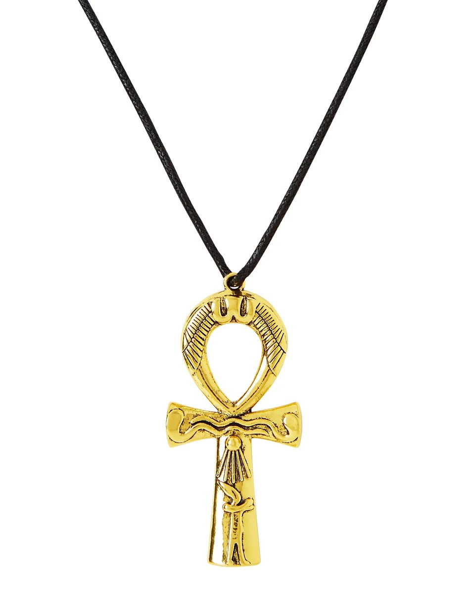 This goldtone ankh necklace offers a shiny finishing touch to your look.