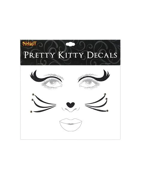 You’ll be purrrfect in the Officially Licensed Black Cat Face Decal. Features black whiskers, black heart-shaped nose and elaborate eye decal.