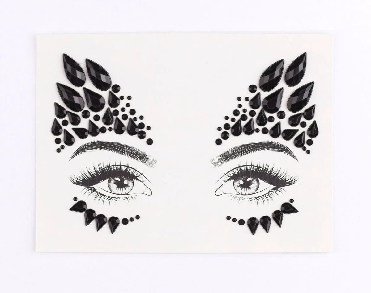 Accentuate your eyes with these adhesive black face decal jewels! These decal jewels are a breeze to apply and will make you look like a beauty expert. Swan princesses, dark witches, and glam vampires: you need this accessory!