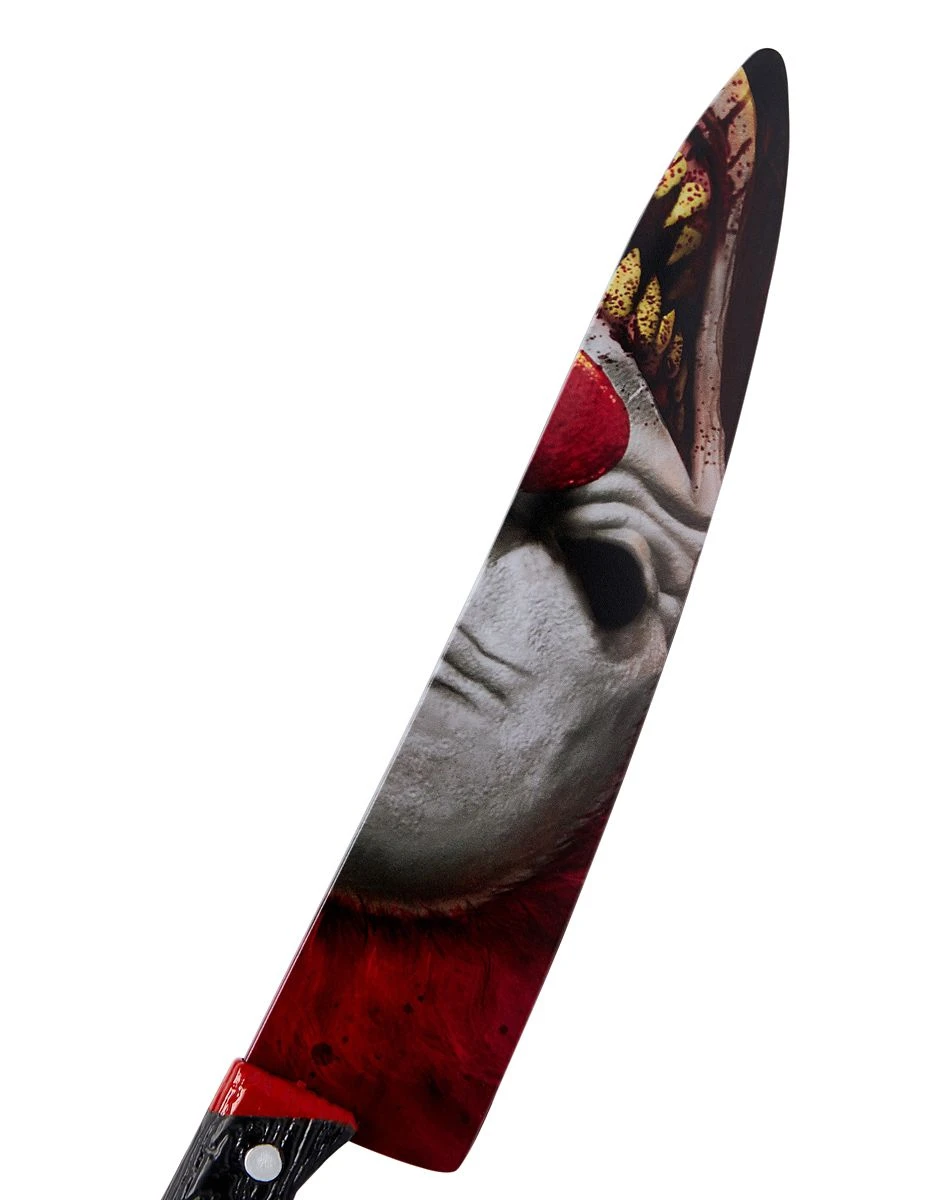 Complete your Crouchy costume with this terrifying Crouchy Knife! Featuring the scary clown himself, no one will want to mess with you on Halloween night.