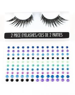 Who said unicorns are always pure? Add an air of mystery to your enchanting ensemble with these dark and colorful facial accessories. Featuring glittery black eyelashes and cool-toned multicolored gems, youβll have everything you need for your prance on the dark side.