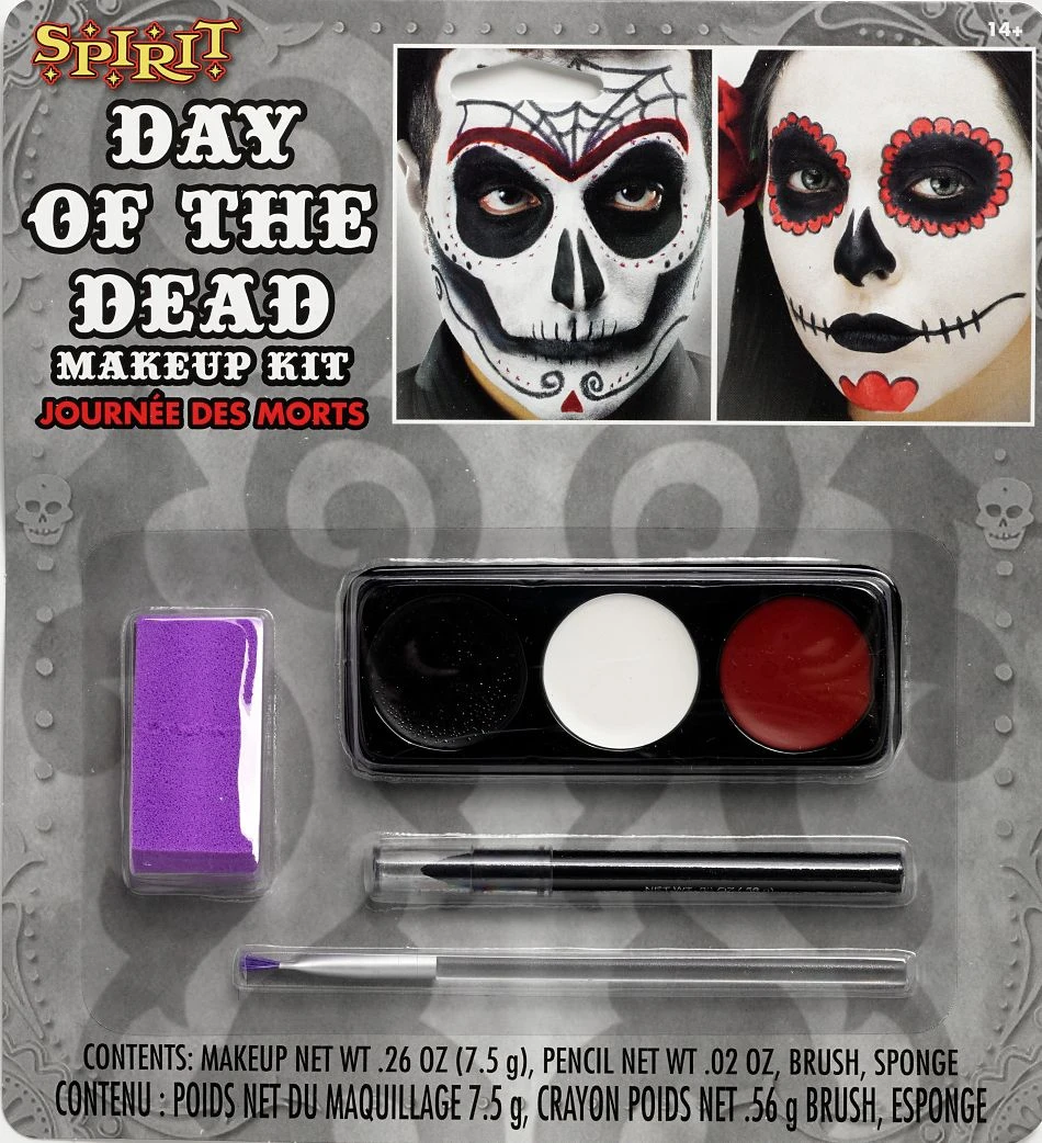 Stay out of harms way on Halloween when you honor the spirits using this Day of the Dead Makeup Kit. Decorate your face with fun sugar skull patterns using red, white, and black makeup palette and tools!