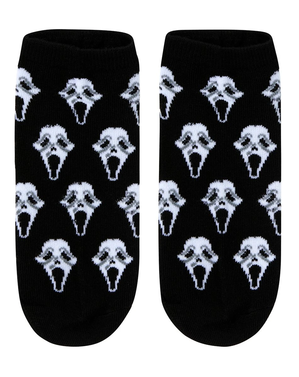 Add some slasher style to your wardrobe with these Ghost Face No Show Socks! This officially licensed 5-pack of socks, which features assorted styles of your favorite horror icon, Ghost Face, will add some positively petrifying style to your day.