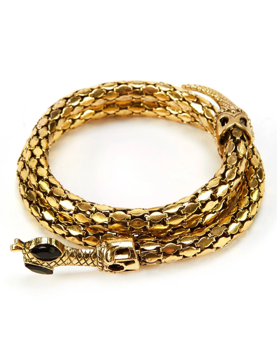 Add a dangerously stylish accent to your look with this Goldtone Roman Snake Cuff. This snake cuff features stunning detail including ornate scales and faux gem eyes.