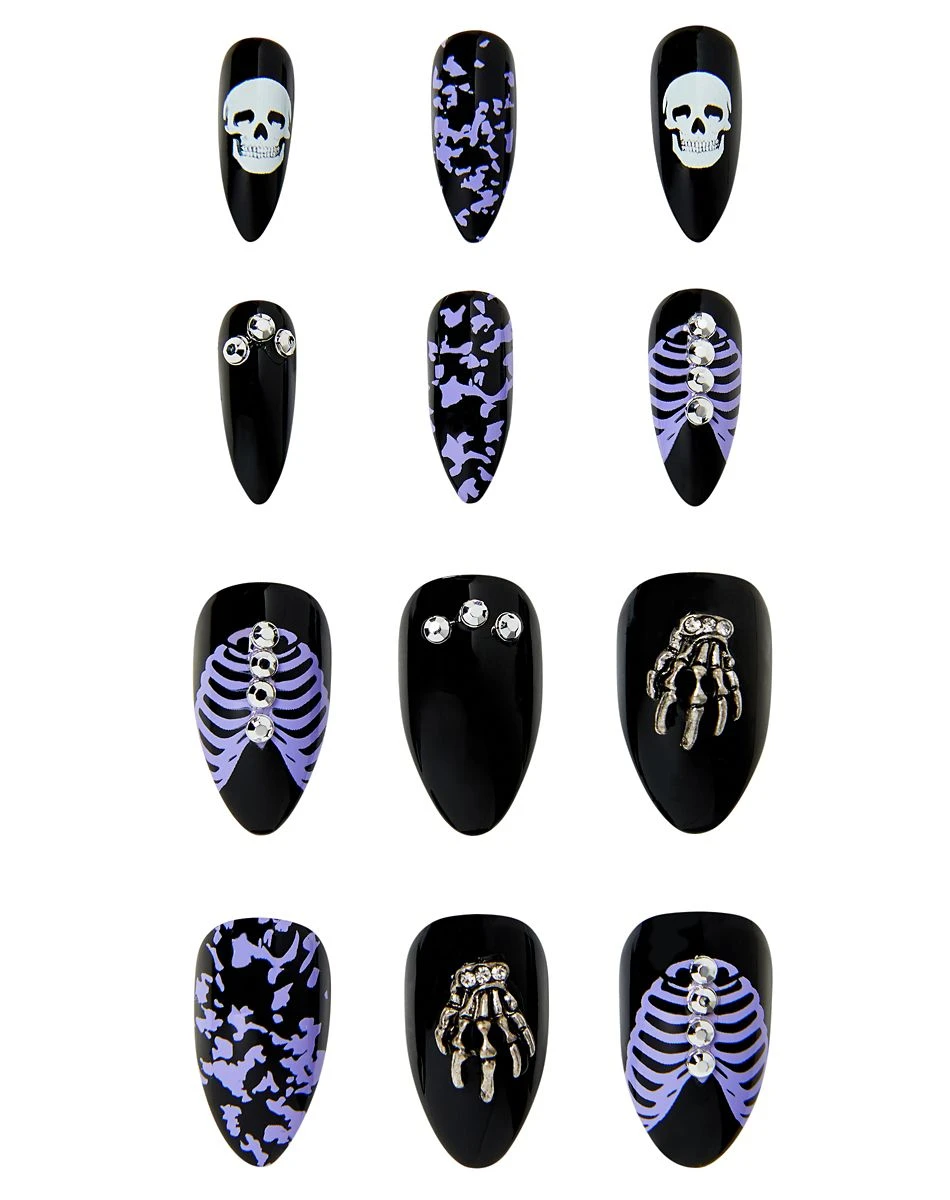 You’ll love adding these skeleton nails to your costume this year. The purple, black, and silver detail will have you standing out in every room.