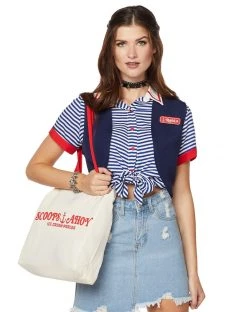 This officially licensed shirt and tote bag set are the perfect addition to your Stranger Things collection. The striped short sleeve shirt comes with an attached vest and name badge, so you’ll feel just like your favorite character!