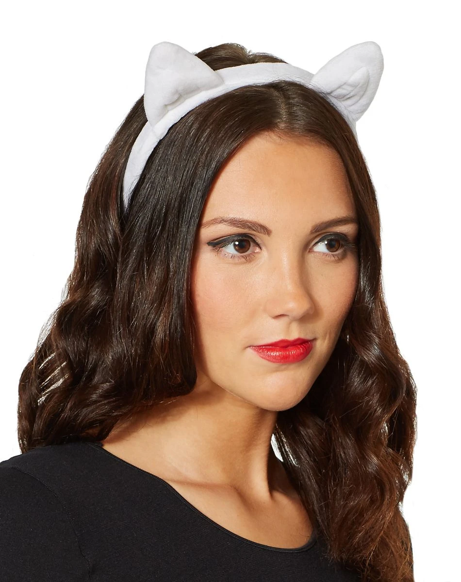Meow! Enhance your feline look with these adorable white cat ears. Soft to the touch for all day comfort.